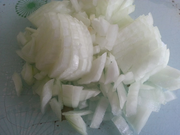 Colocaremos en nuestro vaso de thermomixel el aceite y la cebolla. Programamos 6 segundos / velocidad 4.