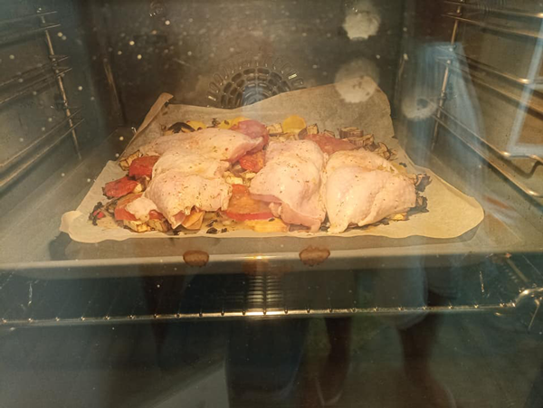 - Colocamos el pollo en un recipiente para horno y horneamos unos 45 minutos.